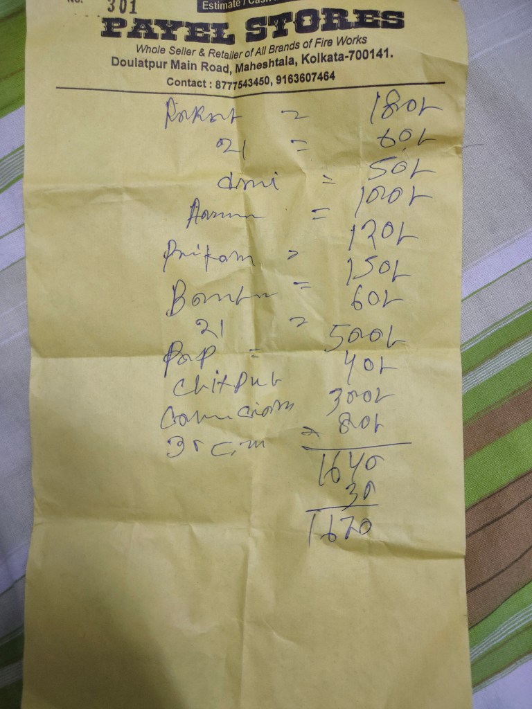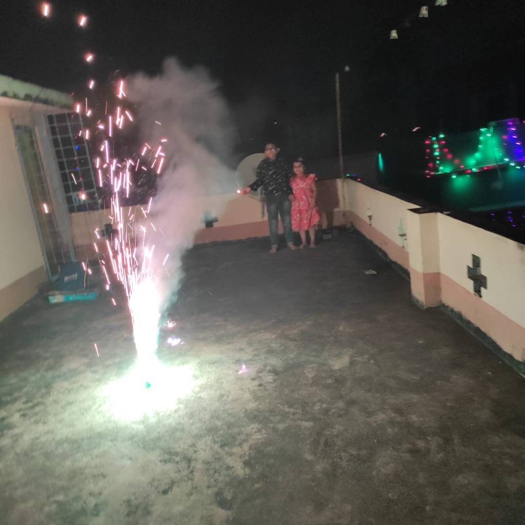 Kali Bhagwan from Nani and Mama before we went for the cracker bursting at the roof in which always you participated from remote only guiding others and distributing crackers.