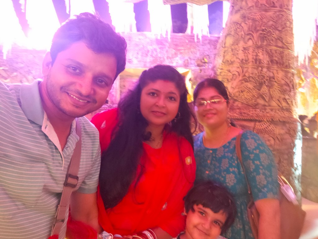 Next day it was bhai dooj, another big celebration at Mom’s place. in the night Mama took us all for the sightseeing of famous Kali Pandals around the city, a trip worth taking-