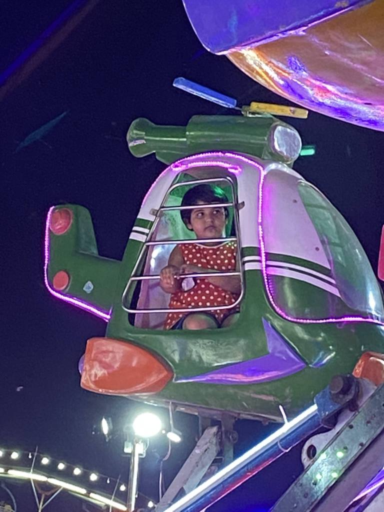 Notwithstanding the tiredness of long travel, we went for Mela at night of 14th and your joy there knew no boundaries as you went from one ride to another as we stood there watching and enjoying many shades of emotions on your face: excitement, fear, curiosity, and happiness.