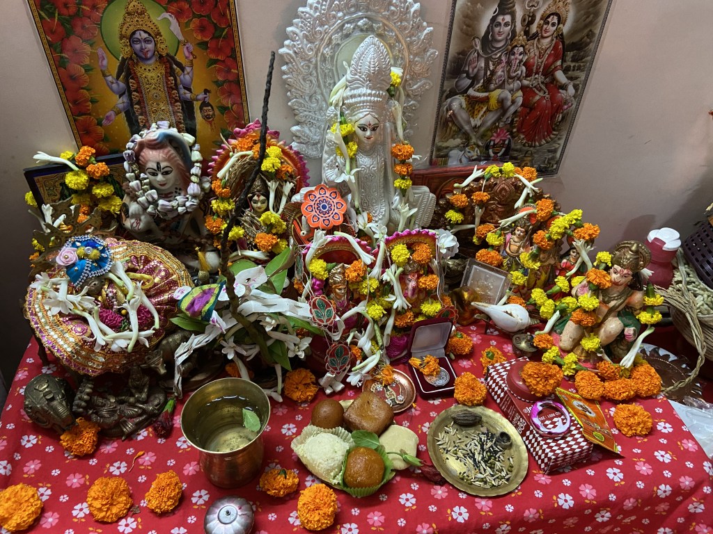 Next our big day was celebration of the Laxmi Pooja on 19th which your mother meticulously prepared for as she always does and you enjoyed it as you always do, mostly busy with offering your prayers to the another pooja spot you made alongside the Laxmi Pooja.